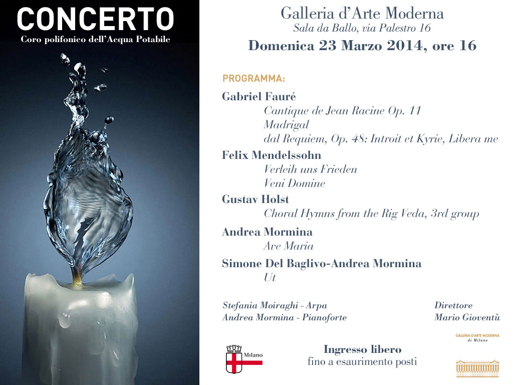 Con Andrea Mormina al piano e Stefania Moiraghi all’arpa, domenica 23 Marzo canteremo brani di Mendellsson, Fauré, Holst, Mormina e Baglivo.