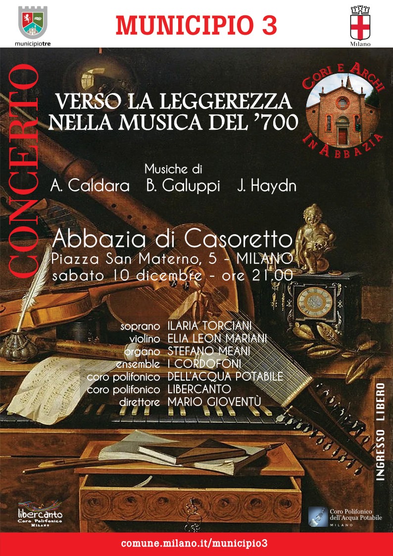 Immagine Sabato 10 dicembre 2022 “Verso la leggerezza nella musica del ‘700” 15 martedì Nov 2022 Posted by coroacquapotabile in Concerti ≈ Lascia un commento Condividi: Condividi su X (Si apre in una nuova finestra) X Condividi su Facebook (Si apre in una nuova finestra) Facebook Mi piace Caricamento... Correlati